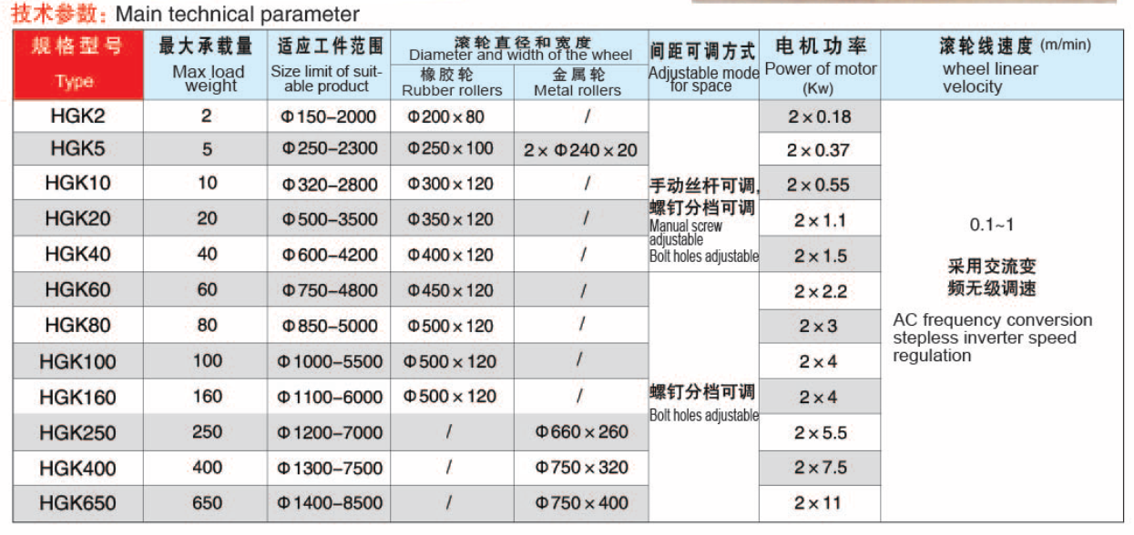座各一臺組成。帶動主動滾輪運轉的兩個蝸輪減速器為同步運轉。通過變頻器實現無級變速。工件回轉平穩,工件回轉的線速度為6—60米/小時,可以滿足手工焊、自動埋弧焊、自動堆焊各種不同焊接的需要,以及滿足工件的各種鉚裝之用,使所有滾輪更能充分利用。通過調節滾輪座在不同螺釘孔位置,從而滿足不同直徑工件。